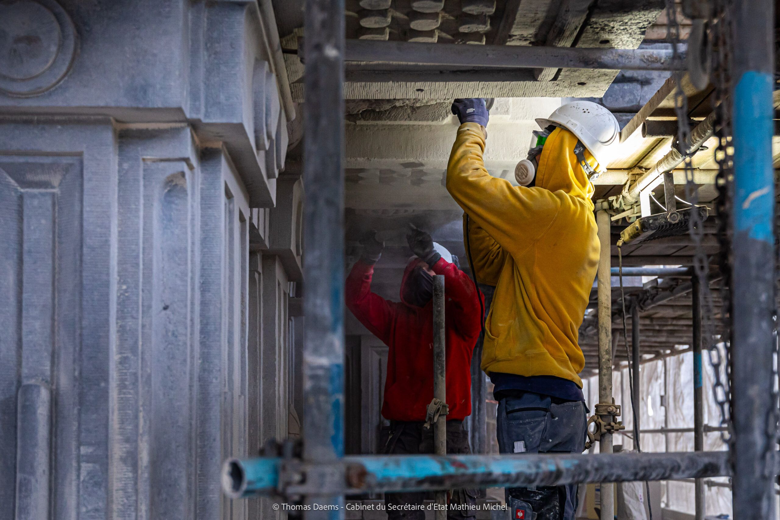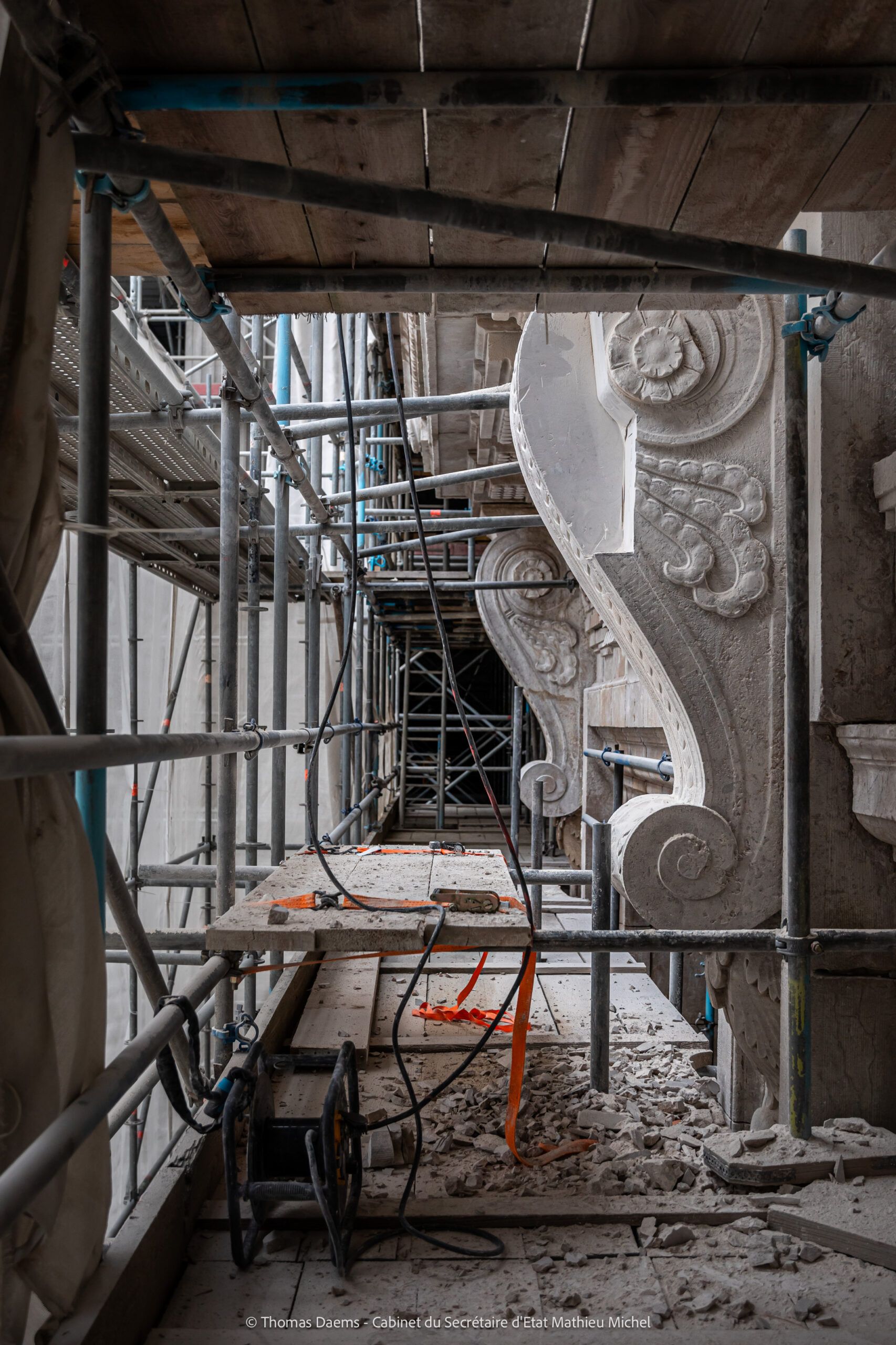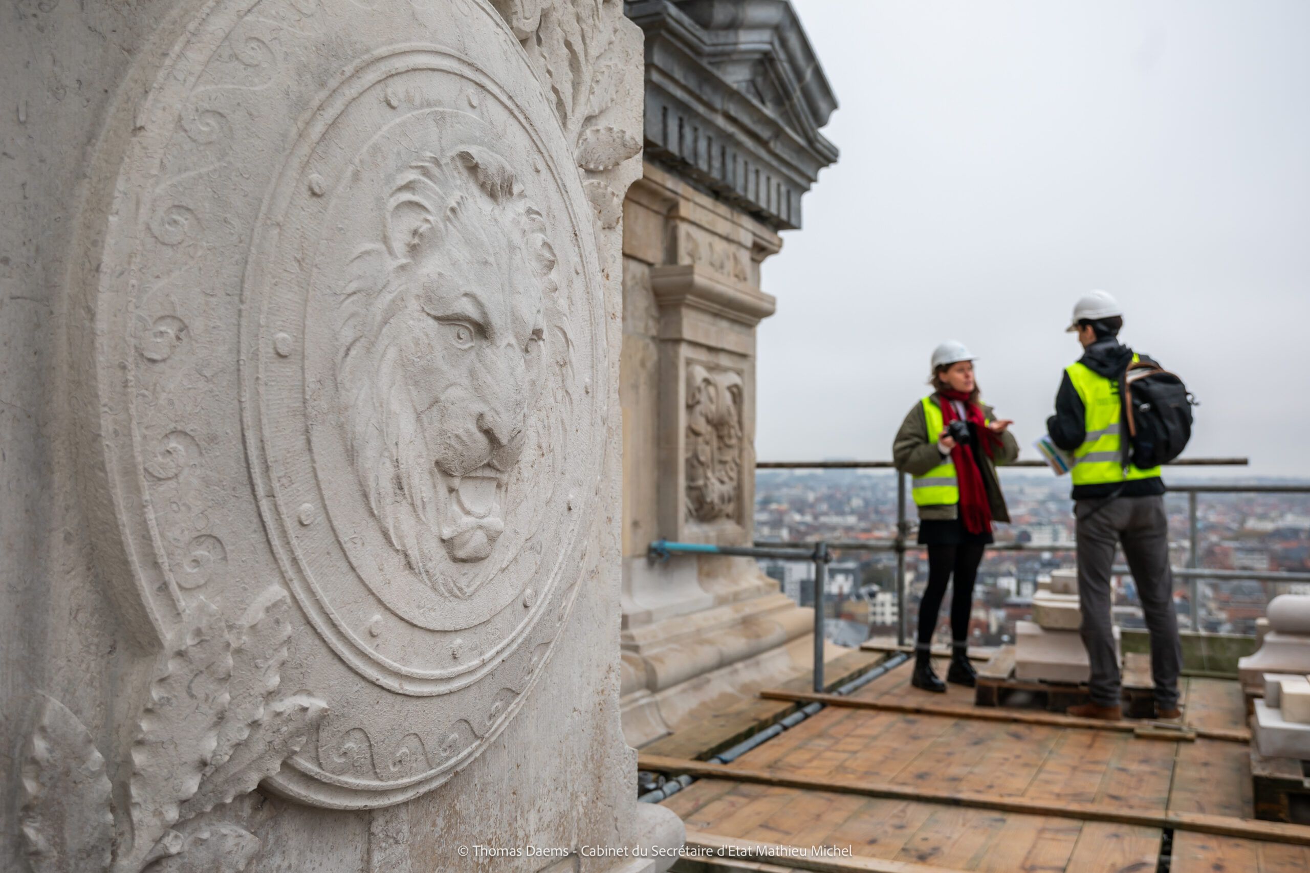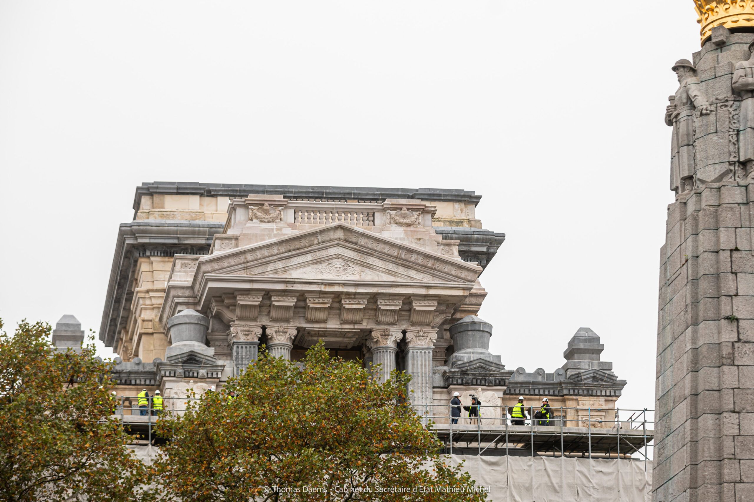 - Entrepreneur pour la restauration de la façade avant et l’adaptation des échafaudages du socle de la coupole : T.M. Artes Woudenberg nv – Artes Roegiers nv