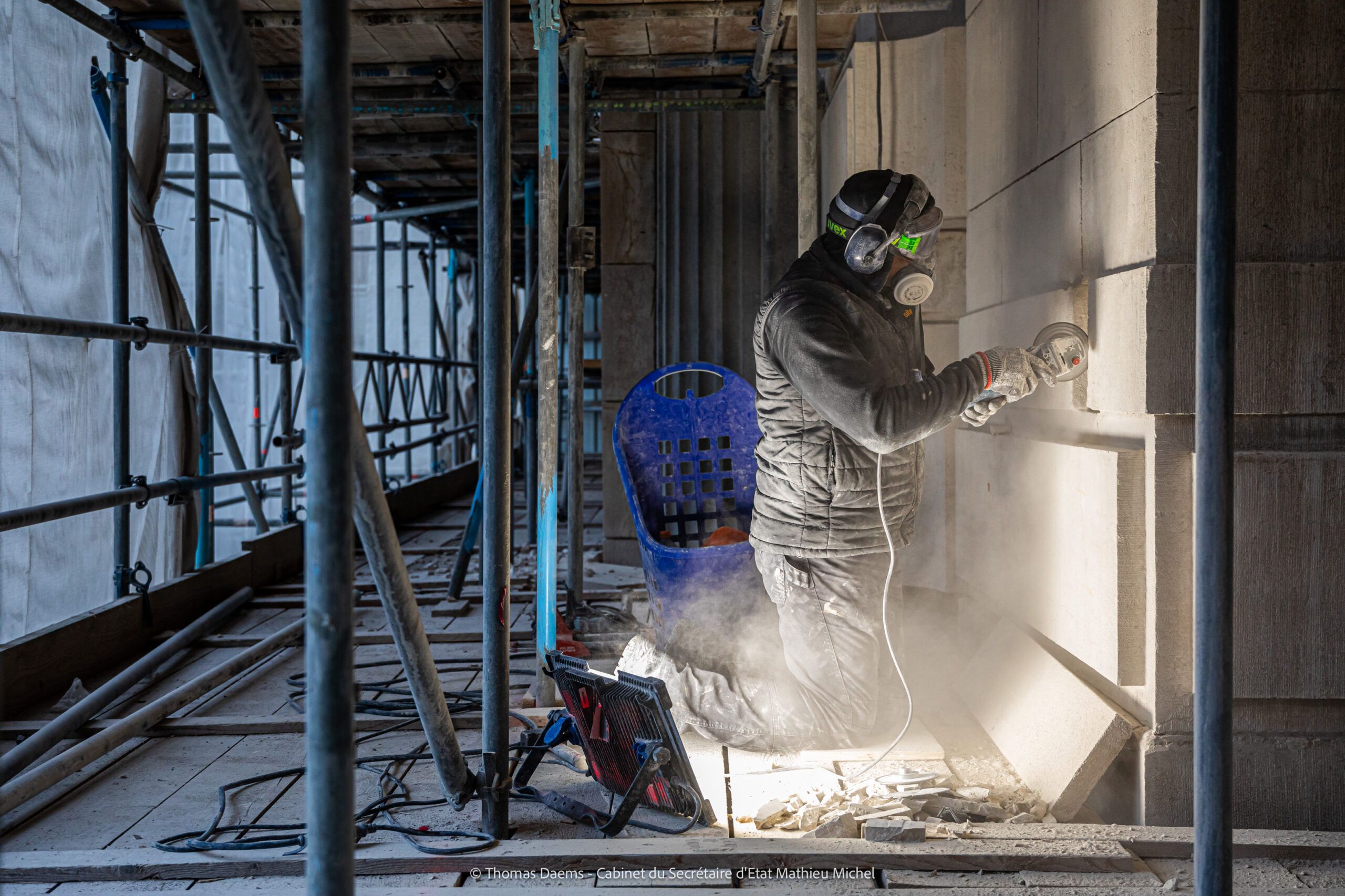 Le travail dans les ateliers de taille de pierre est réalisé en partie manuellement, mais dans la mesure du possible, des dessins numériques et des robots sont également utilisés pour fraiser les pierres. Cette numérisation permet d’accélérer le processus de restauration et d’en améliorer la précision.