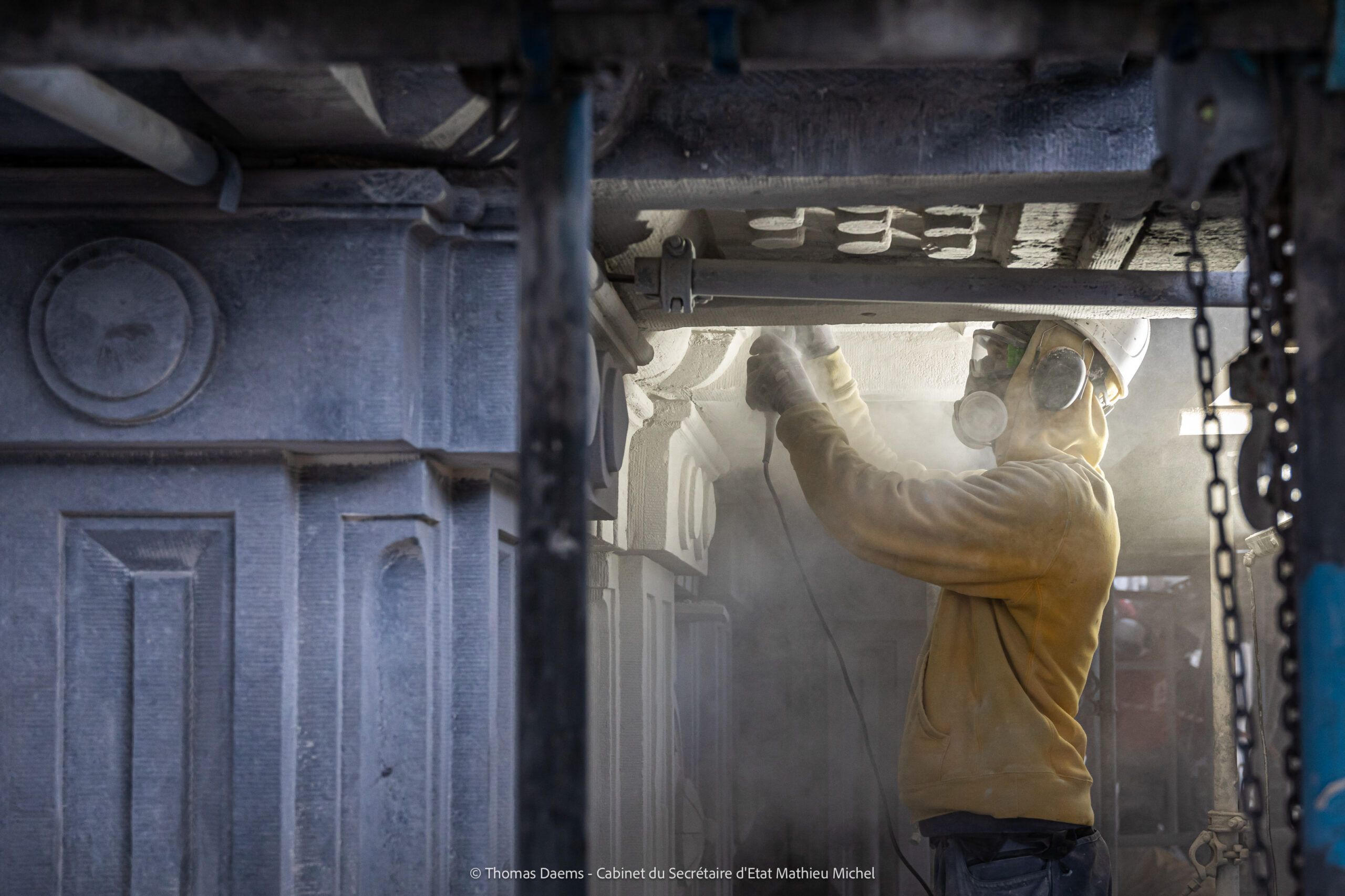 Afin de conserver l’aspect d’origine du Palais de Justice, des pierres provenant des carrières d’origine sont utilisées pour la restauration. Il s’agit principalement des carrières de Comblanchien dans la région française de Bourgogne. Les blocs de pierre sont sélectionnés dans les carrières en fonction de leur qualité et sont ensuite taillés sur mesure dans des ateliers de taille de pierre en Belgique.