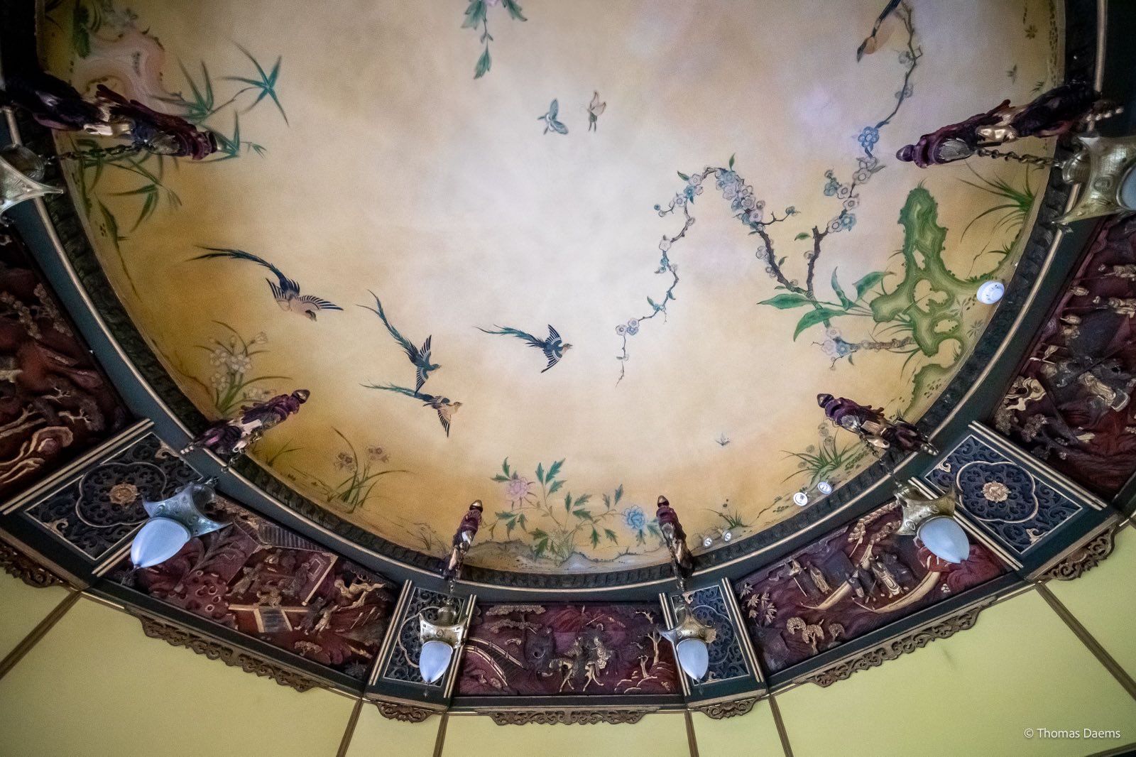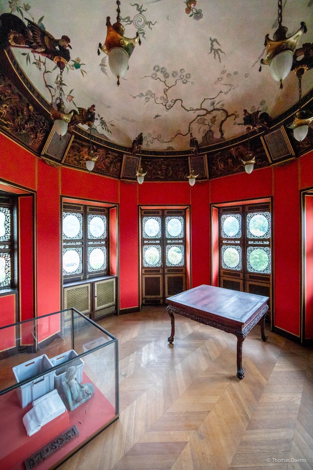Le Pavillon Chinois, conçu par l’architecte français Alexandre Marcel à la demande du roi Léopold II, a été inauguré en 1913. Après avoir visité plusieurs fois le panorama du ‘Tour du Monde’ à l’Exposition universelle de Paris en 1900, le roi demanda à Alexandre Marcel de construire un site architectural similaire aux abords du domaine royal de Laeken, afin de témoigner des bonnes relations entre la Belgique, la Chine et le Japon. Destiné initialement à devenir un restaurant de luxe, le Pavillon Chinois a rapidement accueilli une exposition permanente valorisant les relations commerciales entre la Belgique et l’Extrême-Orient.